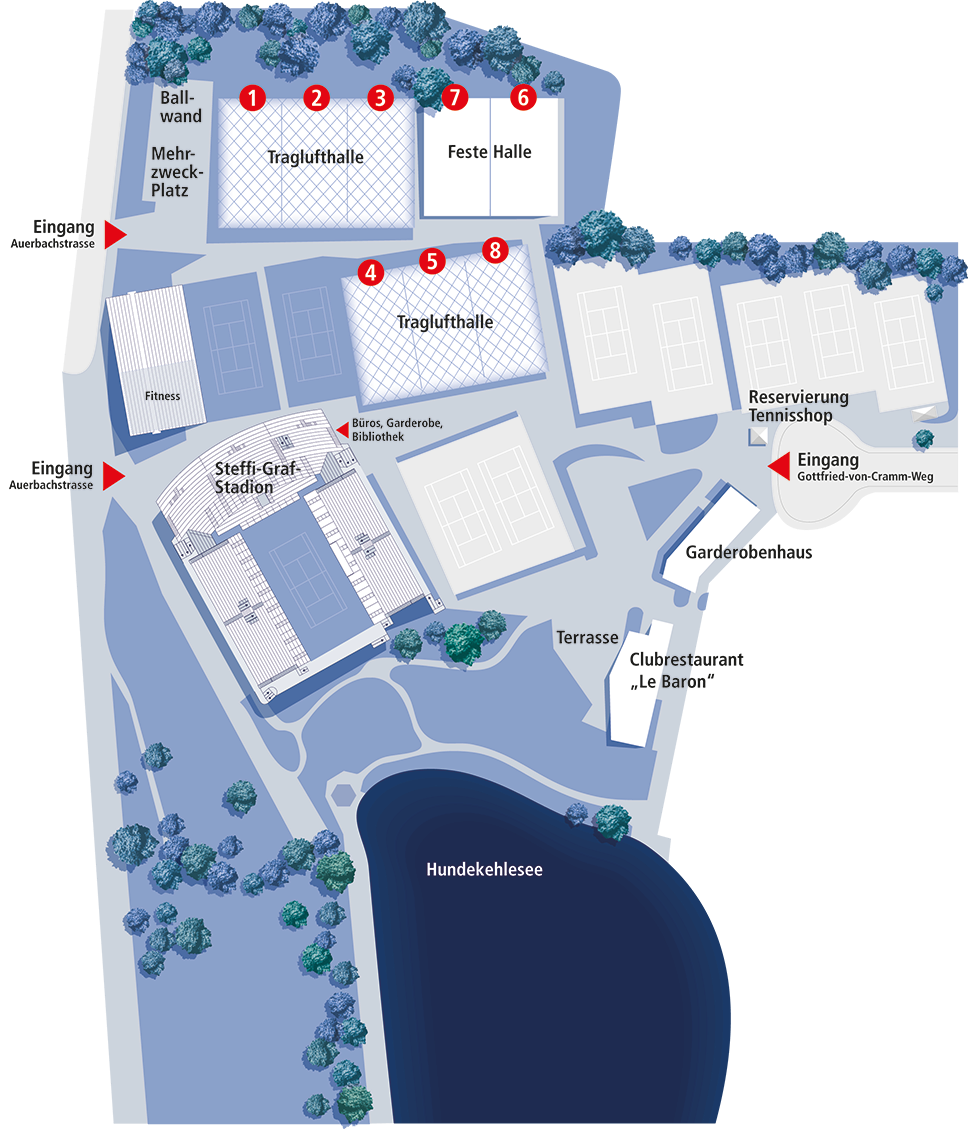 Buchen Sie Ihre Tennishalle in Berlin in zentraler Lage unweit vom Kurfürstendamm im Stadtteil Grunewald auf dem Gelände des LTTC "Rot-Weiß" Berlin.
